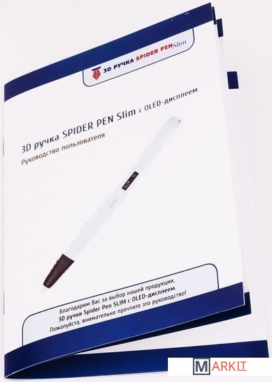 Комплектация - 3D ручка Spider Pen SLIM с OLED дисплеем;- Блок питания;- USB-кабель;- Демо-комлект пластика 10 метров;- отвертка для регулировки температуры;- Инструкция на русском языке;- Книга трафаретов.