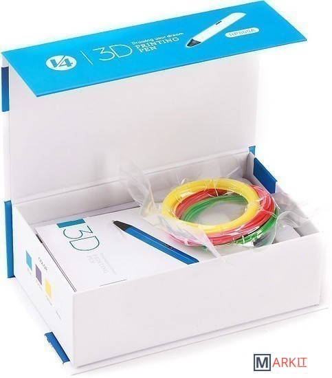 OLED-дисплей, возможность регулирования температуры нагрева и интенсивности подачи пластика, питание как от сети, так и от USB, готовность к работе уже через 2 минуты.