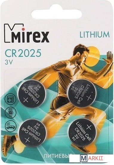 Markit » Батарейки, аккумуляторы, зарядные » Батарейка Mirex CR2025 4 шт 23702-CR2025-E4