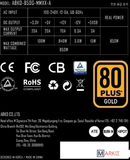 Markit » Блоки питания » Блок питания Abkoncore Tenergy TN-850 Gold Modular