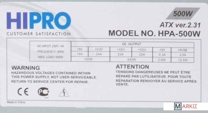 Markit » Блоки питания » Блок питания Hipro HPA-500W 500W