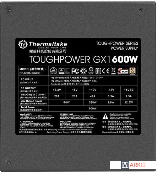 Markit » Блоки питания » Блок питания Thermaltake Toughpower GX1 600W SP-600AH2NCG