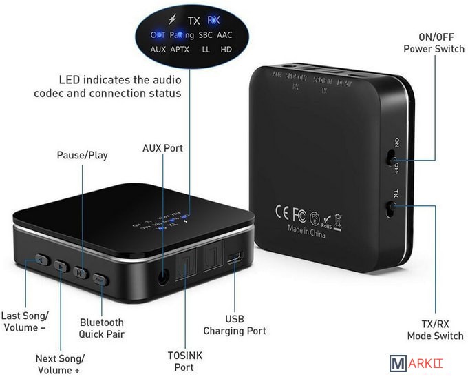 Markit » Усилители для наушников » Bluetooth аудиоресивер USBTOP Bluetooth 5.0 Toslink/SPDIF/AUX