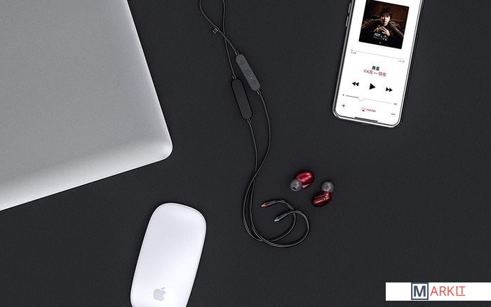 Сменный кабель для наушников со встроенным аккумулятором, микрофоном и Bluetooth модулем, оснащенный пультом управления и регулятором громкости. Емкость аккумулятора составляет 120 мА·ч, время работы от одной подзарядки около 10 часов, время зарядки составляет 2 часа. Радиус действия Bluetooth модуля около 20 метров. Поддерживает форматы кодеков aptX, SBC и AAC. Версия Bluetooth 4.1. Коэффициент гармонических искажений (THD+N) порядка 0.05%. Также оснащен специальными фиксаторами для заушного крепления и приспособлением для регулировки длины провода. USB-кабель для подзарядки аккумулятора в комплект не входит.