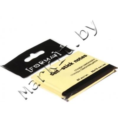 Бумага для заметок с липким краем Format, 50 x 75 мм, 1 блок x 80 л., желтая Код: 31261