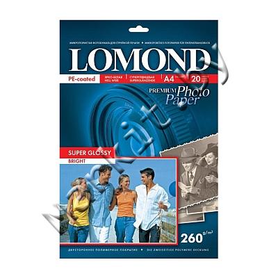 Фотобумага Lomond (1103101) A4 260 г/м2 суперглянцевая ярко-белая, односторонняя, 20 листов Код: 3427