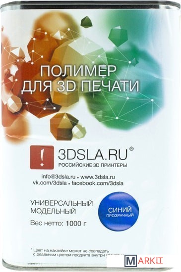 Markit » Расходные материалы для 3д принтера » Фотополимер 3DSLA Полимер универсальный модельный 1 кг (синий прозрачный)