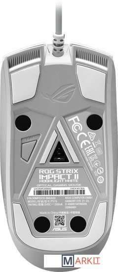 ROG Strix Impact II Moonlight White – это игровая мышь с легким симметричным корпусом, которая отличается высокой чувствительностью за счет сенсора с разрешением 6200 точек на дюйм. С помощью специальной кнопки ее чувствительность моментально изменяется между четырьмя заданными уровнями. Основные кнопки используют шарнирный механизм для уменьшения глубины хода. Их переключатели можно заменить, чтобы продлить срок службы устройства. Изготовленный из мягкой резины кабель не препятствует плавному скольжению мыши по столу.Команда разработчиков ASUS привлекла к созданию мыши ROG Strix Impact II Moonlight White профессиональных киберспортсменов, поэтому ее симметричный корпус, одинаково хорошо подходящий и для правшей, и для левшей, отличается продуманной эргономикой. Вес устройства – всего 79 г. Сенсор чувствительностью до 6200 точек на дюйм способен отслеживать перемещения со скоростью до 220 дюймов в секунду. Частота опроса в 1000 Гц гарантирует максимально быстрый отклик устройства. Мышь обладает пятью кнопками, которые можно запрограммировать по своему вкусу.Чем меньше ход клавиши, тем быстрее она срабатывает, поэтому в основных кнопках мыши ROG Strix Impact II Moonlight White используется специальный механизм: металлические шарниры и пружины балансируют кнопки и минимизируют расстояние от них до переключателей. Результат – короткий ход и быстрый возврат кнопок, что обеспечивает их четкое и стабильное срабатывание при каждом нажатии.Выбирайте среди бесчисленного множества цветовых оттенков и нескольких динамических визуальных эффектов, а также синхронизируйте ее работу с подсветкой других Aura-совместимых устройств (технология Aura Sync). Заданные настройки можно сохранить в виде трех профилей в памяти самого устройства, чтобы затем использовать их при подключении к разным компьютерам.