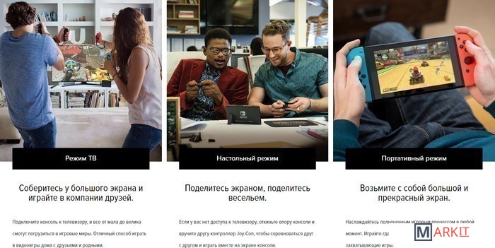 Обновленная версия Nintendo Switch с увеличенным временем работы от батареи - 4.5-9 часов (вместо 2.5-6 часов в первой ревизии) в зависимости от игры и условий работы приставки. Серийный номер новых моделей начинается с букв "XKW".Nintendo Switch - игровая консоль-трансформер. Ее можно использовать как телевизионную приставку, так и в роли портативной консоли. Nintendo Switch можно использовать в трех режимах:1) режим ТВ – использование в качестве телевизионной консоли (по аналогии с Xbox или PS);2) настольный режим –консоль выступает в роли экрана, а Joy-Con – это контроллеры;3) портативный режим – в этом режиме консоль и Joy-Con превращаются единое целое и напоминают собой серию консолей Nintendo DS.Два контроллера Joy-Con можно использовать независимо в каждой руке, а если прикрепить их к держателю Joy-Con, они могут служить единым контроллером. Их также можно присоединить к самой консоли в портативном режиме. Каждый Joy-Con оснащен полным набором кнопок и может выступать в качестве самостоятельного контроллера. Каждый контроллер оснащен акселерометром и гироскопом, что делает возможным управление движением отдельно для левого и правого контроллера.Nintendo Switch также содержит несколько встроенных функций, которые делают консоль более интерактивной. На левом Joy-Con есть кнопка захвата кадра, с помощью которой можно в один миг делать скриншоты во время игры, а затем делиться ими в социальных сетях. На правом Joy-Con находится область NFC для чтения и записи данных amiibo (интерактивные фигурки и карты, которые взаимодействуют с играми), а также инфракрасная камера движения с функцией определения расстояния, формы и движения предметов вблизи. Эта функция будет поддерживаться избранными играми. Например, контроллер сможет определить расстояние до руки игрока и даже распознать его жест: камень, ножницы или бумага. Оба Joy-Con поддерживают функцию вибрации.