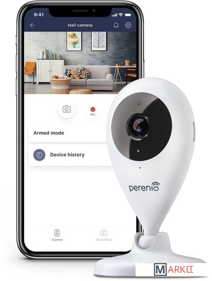 "Стационарная Wi-Fi-камера Perenio PEIFC01 предназначена для систем внутреннего видеонаблюдения и может использоваться как самостоятельно, так и совместно с другими устройствами в составе комплексной системы Perenio Smart.Она позволяет не только видеть, но и слышать, что происходит в помещении.Высокое качество изображения (Full HD 1080p, 2Мп) может быть получено даже при ограниченном освещении, что является несомненным плюсом при записи видео и получении снимков с камеры в темное время суток.Push-уведомление в приложении Perenio Smart при обнаружении движения.Просмотр видео в режиме реального времени, а также запись на карту памяти (до 64гб).Небольшие размеры, каплевидный дизайн и удобный поворотный механизм позволяют установить камеру практически в любой части помещения без ущерба для угла обзора.Как это работает?Пользователь в любое время может зайти в приложение и посмотреть, что происходит у него в помещении с установленной камерой. При включенном режиме охраны камера фиксирует любое движение в области обзора и автоматически начнет записывать видео на карту памяти кадрами по 30 секунд. В приложение на смартфон пользователя при этом приходит push-уведомление об обнаружении движения. Как подключить?1. Подключить камеру к электросети.2. Активировать стационарную камеру в приложении Perenio Smart.3. Установить камеру в необходимое место.