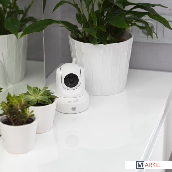 Поворотная Wi-Fi-камера Perenio PEIRC01 предназначена для систем внутреннего видеонаблюдения и может использоваться как самостоятельно, так и совместно с другими устройствами в составе комплексной системы Perenio Smart.Процессор HiSilicon обеспечивает высокую чистоту цветного изображения в течение дня.Режим ночного видения (до 15 метров) обеспечивают ИК-светодиоды.Высокое разрешение записи видео: Full HD 1080p, 2Мп.Push-уведомление в бесплатном приложении Perenio Smart при обнаружении движения.Просмотр видео в режиме реального времени, а также запись на карту памяти (до 64гб).Как это работает?Пользователь в любое время может зайти в приложение и посмотреть что происходит у него в помещении с установленной камерой. Обзор камеры покрывает всю площадь благодаря опции удаленного поворота камеры на 350 градусов вокруг своей оси, а также наклона в 120 градусов. При включенном режиме охраны камера фиксирует любое движение в области обзора и автоматически записывает видео на карту памяти кадрами по 30 секунд. В приложение на смартфон пользователя при этом приходит push-уведомление об обнаружении движения. Как подключить?1. Подключить камеру к электросети.2. Активировать поворотную камеру в приложении Perenio Smart.3. Установить камеру в необходимое место.