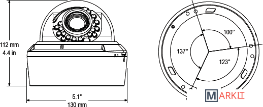 Мин. освещённость в ч/б режиме 0 лк  (ИК вкл)