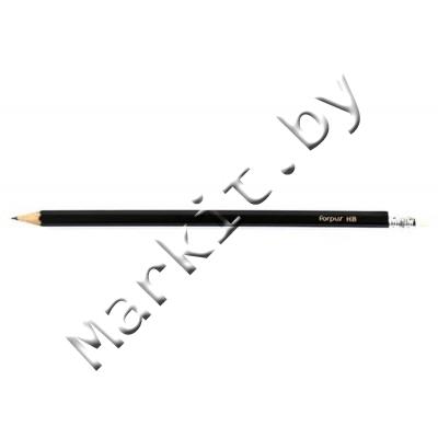 Карандаш чернографитный Forpus, твердость грифеля ТМ, с ластиком, корпус черный Код: 31382