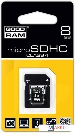 Markit » Карты памяти » Карта памяти GOODRAM microSDHC Class 4 8GB + адаптер (SDU8GHCAGRR10)