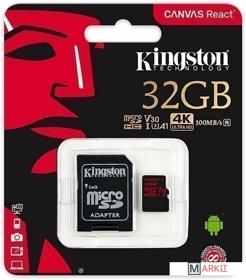 Markit » Карты памяти » Карта памяти Kingston Canvas React SDCR/32GB microSDHC 32GB (с адаптером)
