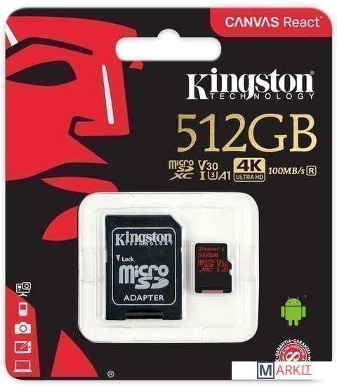 Markit » Карты памяти » Карта памяти Kingston Canvas React SDCR/512GB microSDXC 512GB + адаптер