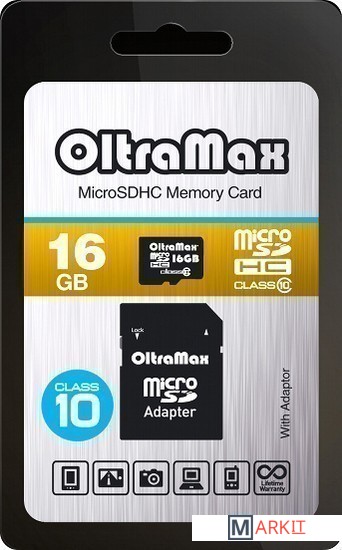 Markit » Карты памяти » Карта памяти Oltramax microSDHC Class 10 16GB +адаптер