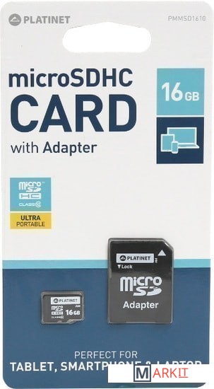 Markit » Карты памяти » Карта памяти Platinet PMMSD1610 16GB + адаптер