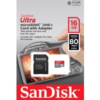 Карта памяти SanDisk Ultra microSDHC 16GB Class 10 + адаптер (SDSQUNC-016G-GN6IA) Код: 96267