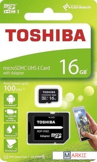 Markit » Карты памяти » Карта памяти Toshiba THN-M203K0160EA microSDHC Class 10 16GB (с адаптером)