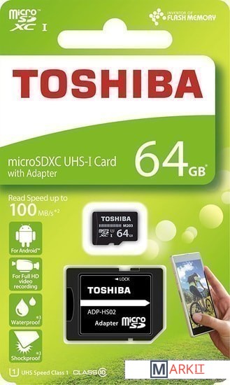 Markit » Карты памяти » Карта памяти Toshiba THN-M203K0640EA microSDXC Class 10 64GB (с адаптером)