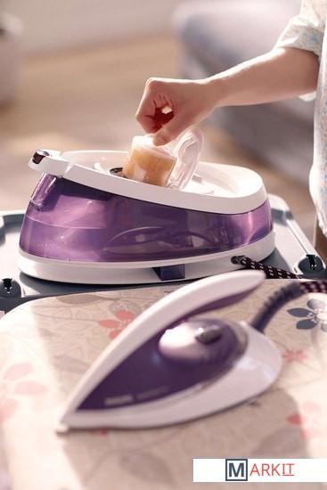 Картридж PureSteam удаляет 99 % известкового осадка из водопроводной воды. Благодаря этому пар подается непрерывно, а на ткани не появляется белый налет.PerfectCare Pure сообщит, что картридж PureSteam пора заменить. Индикатор замены картриджа начнет мигать, на приборе раздастся сигнал, после чего — во избежание поломок и попадания грязных капель на ткань — устройство отключится. Чтобы продолжить эксплуатацию, необходимо либо использовать старый картридж с деминерализованной водой, либо установить новый картридж PureSteam.
