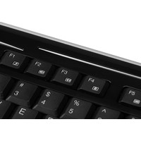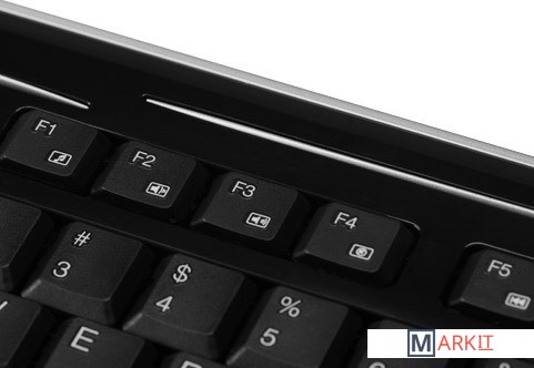 Клавиатура для ПК с интерфейсом USB, оснащенная двойным хабом. Клавиша Fn активирует управление мультимедийными функциями и популярными офисными приложениями (клавиши управления дополнительными функциями совмещены с основными клавишами).