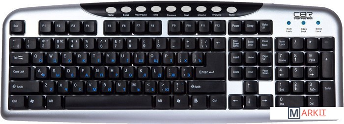 Проводная клавиатура от CBR оснащена 107 стандартными, а также 9 клавишами быстрого доступа к сети Интернет, почте и управлению мультимедийными функциями.