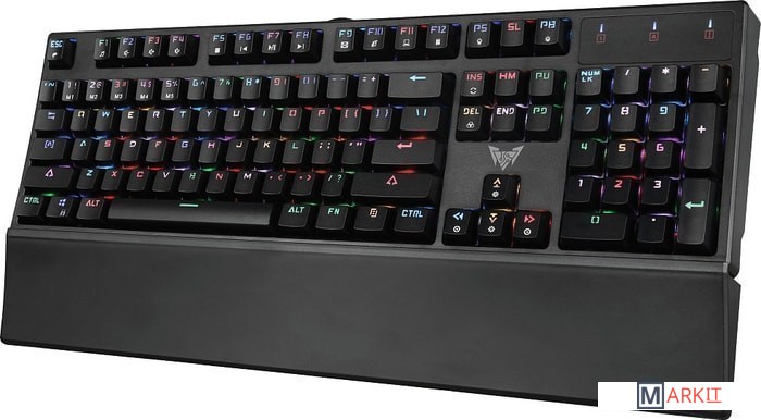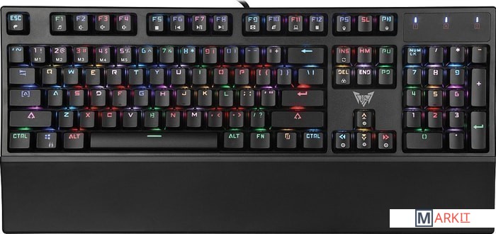 Механическая полноформатная клавиатура. Использованы качественные переключатели OUTEMU BROWN, с тактильной отдачей, но при этом значительно тише чем BLUE. Клавиши имеют внутреннюю подсветку (с нескольким профилями RGB подсветки, в т. ч. однотонными) для удобного использования в условиях отсутствующей или слабой освещенности. Удобная подставка для рук, позволяет пользоваться клавиатурой комфортно продолжительное время..