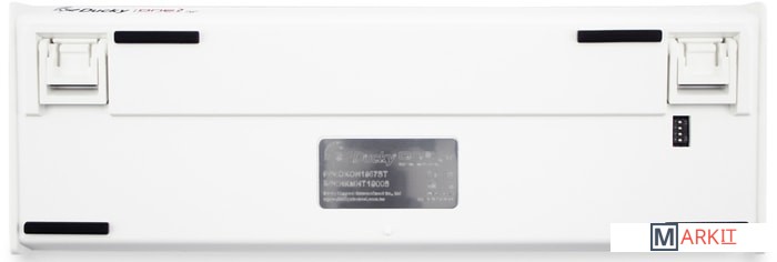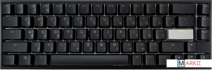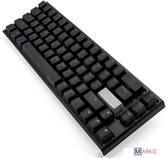 RGB подсветкаПрисутствует множество различных режимов, регулировка цвета осуществляется через палитру или отдельную настройку красного, зеленого, синего цветов. Также можно создать кастомный режим статичной подсветки.ПрограммируемаяDucky Macro 2.0 дает возможность создавать макросы. Можно создать свои мультимедиа, функциональные макросы и многое другое.Регулируемые ножкиДвойные регулируемые ножки предоставляют целых два угла наклона клавиатуры для более комфортной печати, а их прорезиненный низ не даст клавиатуре сдвинуться с местаРусифицированные PBT double-shot клавишиИзготовлены из высокопрочного пластика PBT с применением double-shot технологии, что гарантирует их долговечность и надежность в эксплуатации.DIP-переключателиДают возможность поменять расположение клавиши FN и переключиться между NKRO и 6KRO.Функция Full N-key Rollover по USB (NKRO)Позволяет нажимать одновременно неограниченное количество клавиш. Для печати идеально подойдет как 6KRO, так и NKRO независимо от вашей скорости. Для игр NKRO будет плюсом и неважно, нажимаете ли вы больше 6 кнопок или нет, поскольку, играя в любую игру, вы можете случайно нажать пару лишних клавиш и из-за этого клавиатура имеет шанс не среагировать на нажатие, которые вы хотели совершить изначально. Также присутствует возможность переключения на 6KRO.