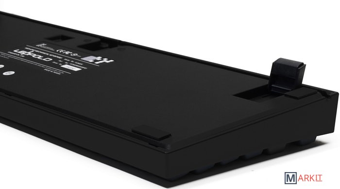 Тип: кликающийСила нажатия: 60 грамм (несмотря на вес, средние)Длина пути: 4 мм (2.2 мм до срабатывания)Данная модель представлена в сером окрасе с голубыми клавишами-модификаторами, расцветка выглядит очень сочно и является одной из самых популярных. Клавиатура собрана добротно и монолитно, а сочетание высококачественных double-shot PBT клавиш с переключателями Cherry MX и звукопоглощающей подложкой позволяет сделать печать на клавиатуре максимально тихой (насколько это возможно для механики). Mini-USB порт спрятан в центре под корпусом, а на самой клавиатуре имеются центральная и две боковые канавки под кабель.Клавиатура поддерживает сочетание клавиш для регулировки громкости и управления музыкой, также имеется возможность переключения между 6KRO и NKRO.DIP-переключатели на задней панелиДают возможность поменять местами функции кнопок Ctrl и Caps Lock, Windows и Alt, Windows и Fn или отключить Windows.Звукопоглощающая подложкаПоглощает звуки при нажатии, делая процесс печати более тихим по сравнению с обычными механическими клавиатурами.Низкопрофильные клавиши Step-Sculpture2Данные клавиши заметно ниже и имеют оптимальный угол наклона, из-за чего, по отзывам, печатать приятнее и комфортнее, чем на более высоких клавишах.Клавиатура совместима с Mac OSFN-слой работает (кроме клавиш F6, F8, F9), а поменять местами клавиши-модификаторы можно в системных настройках. Проверено с MAC OS 10.13Функция Full N-key Rollover по USB (NKRO)Позволяет нажимать одновременно неограниченное количество клавиш. Для печати идеально подойдет как 6KRO, так и NKRO, независимо от вашей скорости. Для игр NKRO будет плюсом и неважно, нажимаете ли вы больше 6 кнопок или нет, поскольку, играя в любую игру, вы можете случайно нажать пару лишних клавиш и из-за этого клавиатура имеет шанс не среагировать на нажатие, которое вы хотели совершить изначально. Имеется возможность переключения между NKRO и 6KRO через FN сочетания.