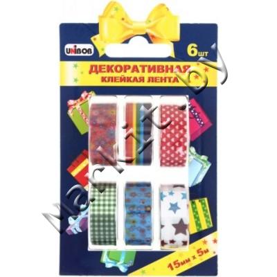Клейкая лента декоративная Unibob 51715 15мм x 5м ассорти 6 шт. Код: 33402