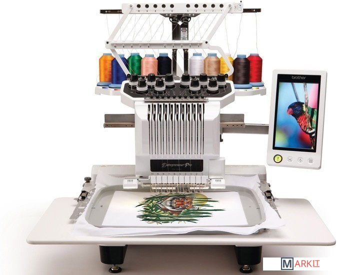 Вышивальная машина PR-1000e предлагает 10 игл, очень большую область для вышивания, видеокамеру для позиционирования и сенсорный дисплей, позволяющих редактировать и просматривать рисунки.