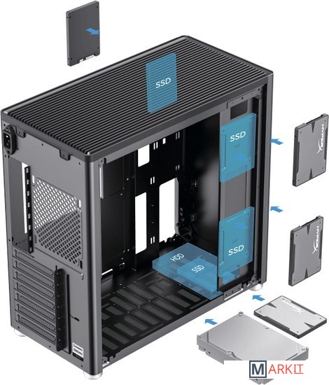 Конфигурация вентиляторов сверху: 2x120 или 2x140mmснизу: 3x120 или 2x140mm сзади: 1x120mm