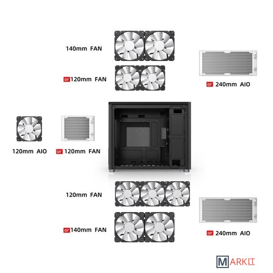 Поддерживаемые СЖО сверху: 120mm*2 / 140mm*2снизу: 120mm*3 / 140mm*2сзади: 120*1mm