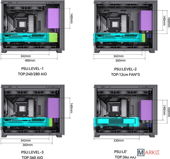Поддерживаемые СЖО сверху: 240 - 360 ммснизу: 240 - 360 ммсзади: 120 мм