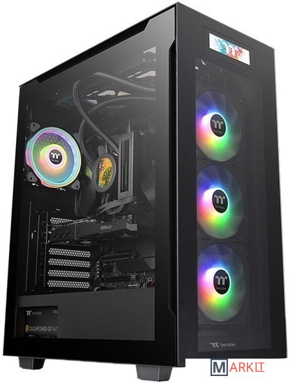 Корпус Mid-Tower, оснащенный 3,9-дюймовым ЖК-дисплеем, который в режиме реального времени может показывать ключевые параметры работы компьютера, файлы с изображениями или различные визульные эффекты. Кроме того, он оснащен тремя предустановленными 120-мм 5V ARGB вентиляторами на передней панели и прочными 3-мм панелями из закаленного стекла на передней, верхней и левой сторонах.Разрабатывая корпуса серии Divider, компания Thermaltake сделала упор на возможность максимально кастомизировать корпус как внешне, так и внутренне. Наиболее выдающейся особенностью Divider 550 TG Ultra ATX Mid Tower является ЖК-дисплей, расположенный в верхней части передней панели. Такое решение дает пользователям лучше персонализировать свою сборку. Верхняя, передняя и левая панели из закаленного стекла не требуют инструментов и легко снимаются, обеспечивая свободный обзор компонентов находящихся в компьютере. Кроме того, корпус поставляется с тремя предустановленными 120-мм фронтальными вентиляторами 5V ARGB на адресных светодиодах, подсветка которых может быть синхронизирована с программным обеспечением материнских плат от ASUS, GIGABYTE, MSI и ASRock. Divider 550 TG Ultra это прекрасный выбор для сборки игрового компьютера нового поколения не только для геймеров, но и для простых пользователей и энтузиастов!Мониторинг частоты и температуры в режиме реального времени непосредственно с 3,9-дюймового ЖК дисплея, и загружайте любые изображения или GIF-файлы для придания дополнительного шарма с помощью программного обеспечения TT RGB Plus 2.0.Внимание: Divider 550 TG Ultra работает только с TT RGB Plus 2.0С завода в Divider 550 TG Ultra предустановлено три 120мм ARGB вентилятора спереди. Подсветкой этих вентиляторов можно управлять как программно, через фирменную утилиту соответствующей материнской платы, либо посредством встроенного аппаратного контроллера в распоряжении которого имеется 27 предустановленных световых профиля. Выбрать желаемый профиль можно коротким нажатием на кнопку RGB, а при удержании ее в течение трех секунд, управление подсветкой переключится на материнскую плату. Для возврата управления подсветкой встроенным контроллером, снова следует удерживать кнопку RGB в течении 3-х секунд.Встроенная крышка блока питания предназначена для скрытия неприглядных кабелей, что помимо визуальной эстетики, хорошо сказывается на вентиляции. Кронштейн для крепления райзера обеспечивает вертикальную установку GPU и помогает снизить нагрузку на слоты PCI-E.Встроенная крышка блока питания предназначена для скрытия неприглядных кабелей, что помимо визуальной эстетики, хорошо сказывается на вентиляции. Кронштейн для крепления райзера обеспечивает вертикальную установку GPU, что и помогает снизить нагрузку на слоты PCI-E.Divider 550 TG Ultra поставляется с тремя 3-мм панелями из закаленного стекла спереди, сверху и слева. Такие панели толще и более устойчивы к царапинам по сравнению со стандартным акрилом. Так как левая сторона представляет собой панель из закаленного стекла через которую можно любоваться всеми компонентами в их полном великолепии, особенно при включенной RGB подсветке.Divider 550 TG Ultra имеет хорошо продуманную фильтрацию пыли. Один съемный фильтр расположен на правой панели, а другой снижу, под блоком питания, обеспечивая превосходную защиту от пыли и уменьшение загрязнения. Вентиляционные зазоры по бокам верхней и перед