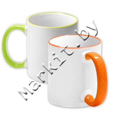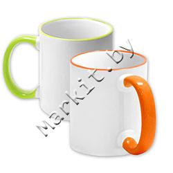 Markit » Оборудование и расходные материалы для постполиграфии » Расходные материалы » Кружки » Кружка керамическая для сублимации, белая глянцевая с цветным ободком и цветной ручкой, 400 мл.