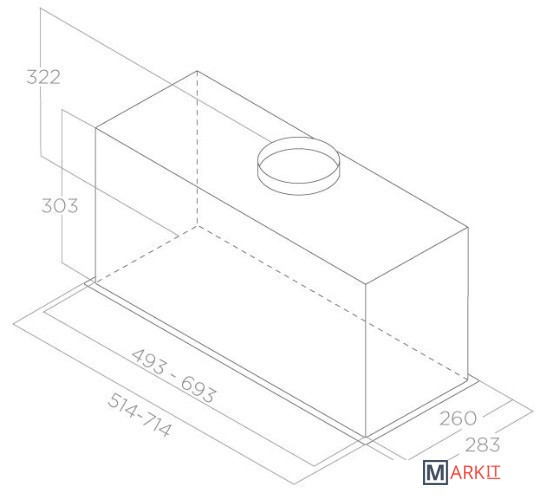 Минимальная производительность отвода 255 куб. м/ч