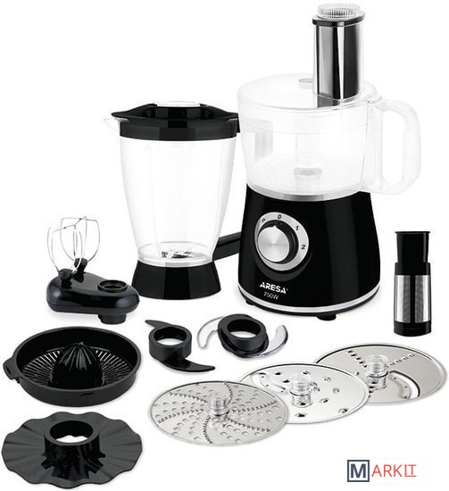 Кухонный комбайн ARESA AR-1701 - прибор который соответствует всем сертификационным нормам. Кухонный комбайн ARESA AR-1701 прошел контроль в лаборатории при Министерстве Здравоохранения Республики Беларусь и не выделяет в продукты вредных веществ. Кухонный комбайн может быть использован при приготовлении смесей для детского питания. Мощность прибора составляет 750 Вт, а объем чаши в комплекте 1,75 л. Благодаря мощному медному мотору и специально разработанному редуктору кухонный комбайн проработает гораздо дольше более дешевых аналогов. Данная модель изготовлена из первичного пластика, что говорит о ее долговечности. Прибор имеет функцию плавной регулировки оборотов, а также удобную систему защитной блокировки. Все терки представляют из себя двусторонние металлические диски изготовленные из высокопрочной нержавеющей стали. ARESA – белорусский бренд бытовой техники. Наша техника проходит сертификацию на территории Республики Беларусь в едином центре ГОССТАНДАРТА. Кроме сертификатов таможенного союза, полученных на территории Республики Беларусь, техника ARESA соответствует всем нормам сертификации Европейского Союза и поставляется на его территорию. Приобретая нашу технику, вы заботитесь о здоровье и безопасности вас и ваших близких.