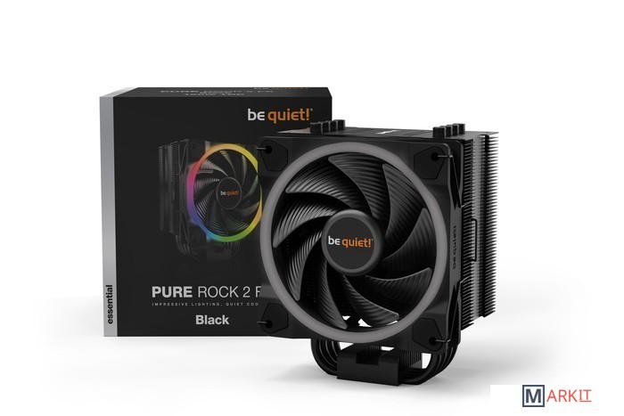 Pure Rock 2 FX Black сочетает яркую ARGB подсветку с высокой эффективностью охлаждения и отлично подходит для тихих мультимедийных и игровых систем. Благодаря вентилятору Light Wings 120mm PWM high-speed, эффективности охлаждения 150 Ватт TDP и четырем 6-мм тепловым трубкам, Pure Rock 2 FX Black обеспечивает отличное соотношение цены и производительности.Высокая производительность охлаждения 150 Ватт TDPВентилятор Light Wings 120mm PWM high-speed для яркого уникального внешнего вида благодаря ARGB подсветке Оптимизированные для высокого воздушного давления и снижения турбулентности потока лопасти вентилятораЧетыре 6-мм тепловые трубки c технологией прямого контакта HDTРадиатор асимметричной конструкции не перекрывает слоты RAMЭлегантная полностью черная поверхность кулераPure Rock 2 FX Black создан для пользователей основной категории ПК систем с подсветкой. Кулер с эффективностью 150 Ватт TDP обеспечивает отличное охлаждение мультимедиа и графических систем в корпусах с прозрачными панелями. Light Wings 120mm PWM оснащен ARGB-подсветкой с 18 светодиодами. Яркое светящееся кольцо создает великолепный вид со всех сторон. Оптимизированная крыльчатка обеспечивает присущую вентиляторам be quiet! бесшумную работу. Уровень шума до 24,4 дБ(А) при максимальной скорости вращения вентилятора доказывает, что подсветка является лишь дополнением к очень тихой и очень производительной работе вентилятора. Pure Rock 2 FX Black оснащен четырьмя 6-мм тепловыми трубками с алюминиевыми колпачками, которые оптимально распределяют тепло по алюминиевым ребрам, обеспечивая отличную интенсивность охлаждения. Радиатор асимметричной конструкции не перекрывает слоты оперативной памяти, делая компактный Pure Rock 2 FX Black полностью совместимым с большинством модулей RAM. Конструкция креплений поддерживает монтаж сверху материнской платы, обеспечивая удобство установки кулера.Сочетание яркой ARGB подсветки и элегантной черной поверхности с алюминиевыми колпачками делает Pure Rock 2 FX Black идеальным украшением любого корпуса ПК.