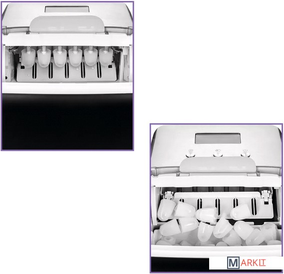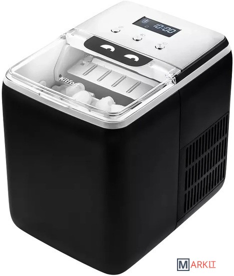 Лёд всего за 13 минут!Льдогенератор КТ-1819 – прибор, который быстро генерирует лёд. Его можно использовать дома для приготовления охлаждённых напитков или для охлаждения жидкостей. Готовый лёд не подмораживается, а медленно тает благодаря термоизолированным стенкам.Генерация льда в виде напёрстков с функцией изменения размера льдаИз-за оригинальной технологии приготовления лёд получается в виде напёрстков. Толщина у них небольшая, поэтому лёд легко измельчается блендером. Напёрстки компактно помещаются в стакане, при этом хорошо пропуская жидкость, которую надо охладить.Автоматическая работаОхлаждение в приборе производится при помощи компрессора с экологически чистым хладагентом R600a по принципу обычного холодильника. Вам нужно просто залить чистую фильтрованную воду в резервуар и нажать кнопку. Остальное льдогенератор сделает сам!Отлаженный механизм генерации льдаПосле попадания воды в лоток для льда под испарителем, на поверхности испарителя намерзает вода. Когда лёд готов, на него подаётся горячий пар. Он начинает таять и отваливаться от испарителя. Все упавшие кусочки льда отправляются в корзину.Всегда полная корзина!Благодаря инфракрасному датчику заполнения корзины, при её переполнении генерация льда автоматически прекращается. В случае, если лёд достали, льдогенератор запускает цикл заново, пока корзина не будет заполнена. В комплекте идёт совок для черпания льда.Простое управление и яркий дисплейУправление и выбор размера льда осуществляется с помощью кнопок на панели управления. На экране отображается таймер, выбранный размер льда, индикация работы, наличия воды и необходимости проведения очистки.Удобный сливЕсли в резервуаре осталась вода, её можно легко вылить. Для этого нужно выдвинуть прибор на расстояние 60 мм от стола, подставить ведро или какую-нибудь ёмкость для воды, и вытащить сливную пробку.Отклеивающийся стикер!Наша техника порадует вас не только своим функционалом, но и интересным дизайном! В любой момент вы можете отклеить креативный стикер без вреда для поверхности.