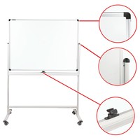 Лаковое покрытие предназначено для письма специальными маркерами для белой доски, а металлическая поверхность позволяет размещать информацию при помощи магнитов. Вращается в горизонтальной плоскости на 360 градусов. Легко перемещается на стенде. Алюминиевая рама придает доске необходимую прочность. Элементы крепления входят в комплект. Размер — 90х120 см.