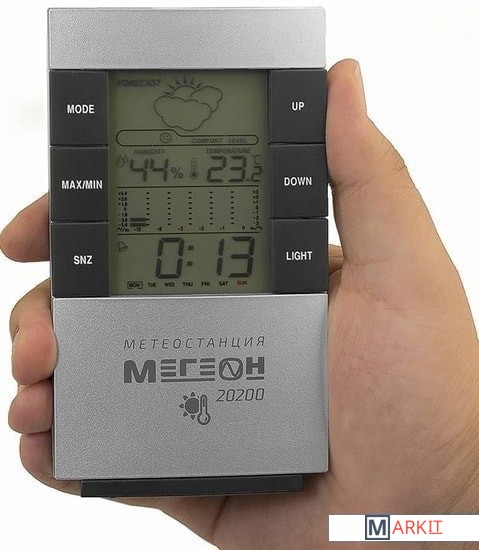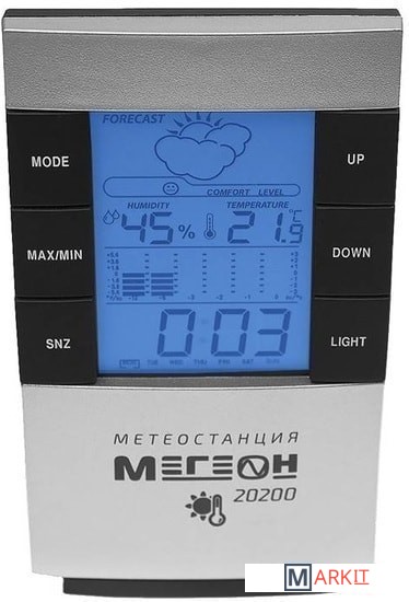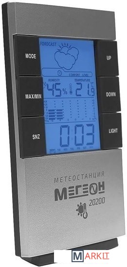 Прибор имеет интуитивно понятный интерфейс и ЖК-дисплей высокого разрешения, на который выводится вся необходимая информация. Интегрированная подсветка дисплея позволяет использовать термогигрометр МЕГЕОН 20200 при любых условиях освещения. Помимо этого изделие самостоятельно определяет уровень комфорта внутри помещения исходя из полученных данных температуры и влажности. Формирует гистограмму изменений температуры за последние 12 часов, а также обозначит максимальные значения параметров, влияющих на комфортное пребывание в помещении. Метеостанция также успешно заменит будильник и станет незаменимым помощником по созданию комфортных условий в домашних и промышленных строениях.