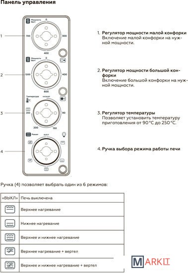 | Режимы работы духового шкафа |
