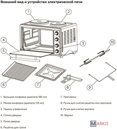 - ручка для снятия противня/решетки;- ручка для снятия вертела. |