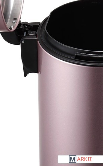 Мусорное ведро EKO Maggey EK9113 с корпусом из нержавеющей стали, окрашенной в золотой цвет. Благодаря специальному защитному слою на поверхности не остается следов отпечатков пальцев и подтеков. Внутри находится съемный пластиковый контейнер для сбора мусора с удобной фиксацией мусорных пакетов. Данная модель оснащена крышкой, которая поднимается на 90 градусов при нажатии на педаль, при снятия ноги с педали крышка плавно и бесшумно опускается.