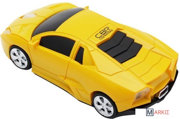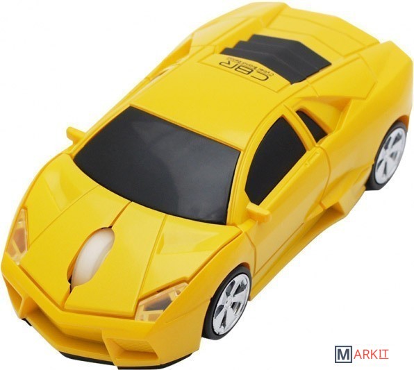Беспроводная мышь, выполненная в виде спортивного автомобиля. Манипулятор оснащен оптическим сенсором, двумя кнопками и колесом прокрутки.