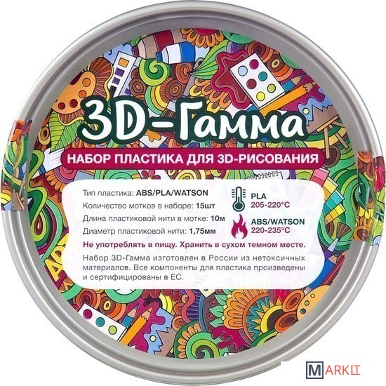 Markit » Расходные материалы для 3д принтера » Набор пластика Даджет 3D-Гамма Watson 1.75 мм