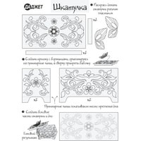 Детский набор трафаретов для 3D-рисования. На каждом трафарете изображен один объект с пояснениями о процессе его создания.Поставляется в конверте. В комплект поставки входят трафареты: колье, броши для кармана, диадема, браслеты и шкатулка.
